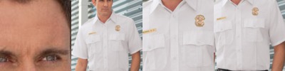 - One-piece, topstitched, lay-flat collar › Hemmed-sleeve ends