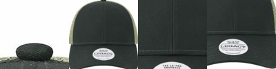 - Heather Tan/Black with mesh back is 55/35/10 acrylic/polyester/wool
