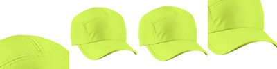 100% polyester front panel; Mesh back panels; 5-panel; Reflective sandwich bill; Reflective taping on mesh panels and closure; Two-piece hook and loop closure;