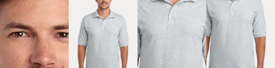 5.2-ounce, 100% ring spun cotton 90/10 ring spun cotton/poly (Ring Spun Sport Grey) Rolled forward shoulders Clean-finished placket Dyed-to-match buttons Modern classic fit, side seamed Recycled, high-performing black tear-away label